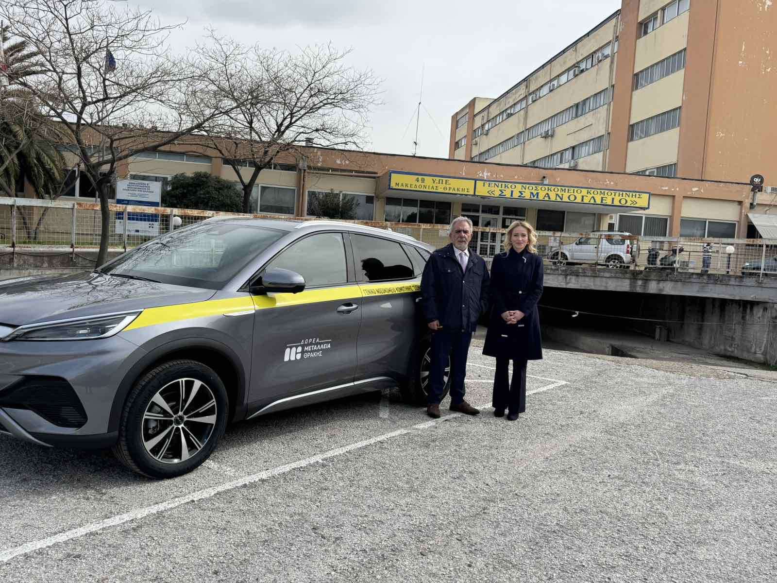 Η Μεταλλεία Θράκης παρέδωσε ένα ηλεκτρικό αυτοκίνητο στο Γενικό Νοσοκομείο Κομοτηνής, σε ειδική εκδήλωση που πραγματοποιήθηκε στην Κομοτηνή. Το όχημα θα χρησιμοποιηθεί για την υποστήριξη και διευκόλυνση των λειτουργικών αναγκών του Νοσοκομείου.